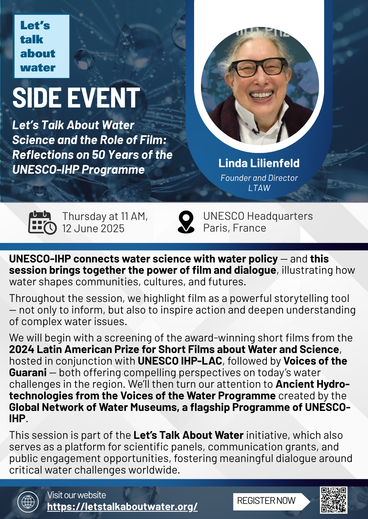 UNESCO-IHP connects water science with water policy — and this session brings together the power of film and dialogue, illustrating how water shapes communities, cultures, and futures.